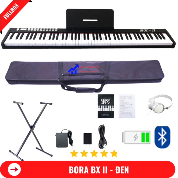 – Đàn Bora được trang bị bàn phím nặng chắc chắn như phím piano cơ, loa ngoài công suất 20w